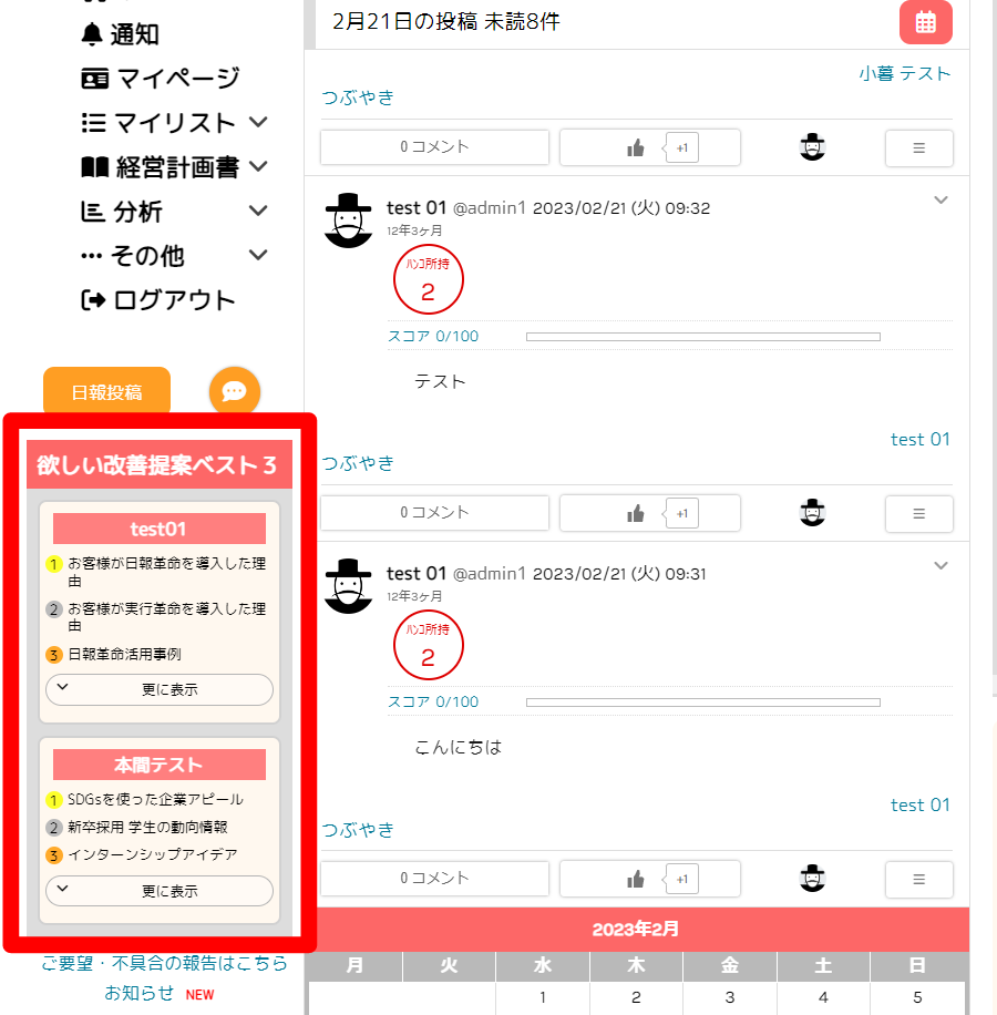 日報の投稿フォーム内にハンコ付与の基準ランクを告知するための機能です。