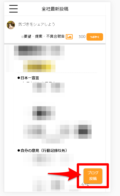 このページでは、パソコンまたはスマホでの通常ブログの書き方について説明します。 ■PCから記入する場合 「ブログ投稿」のボタンを押します。 お客様の声・改善提案・自分の意見を入れられます。日本一宣言は、プロフィールに記入したものが自動的に反映されますので、自分の意見には記入しなくても大丈夫です。 ■スマホから記入する場合 右下の「ブログ投稿」をタップします。 動画解説