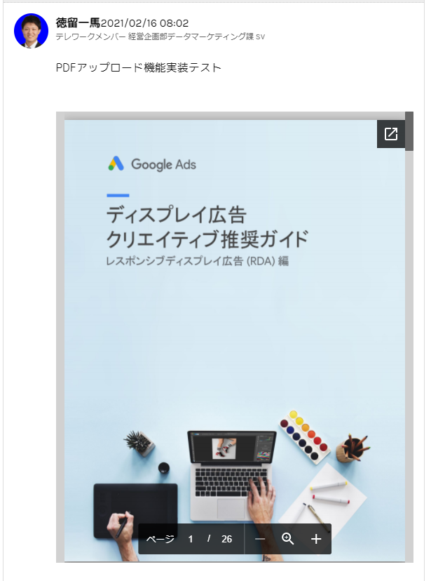 日報投稿やつぶやきでPDFがアップロードできるようになりました。