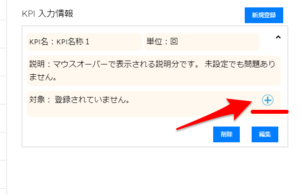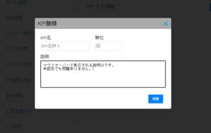 ②「新規作成」ボタンでKPI項目を新規追加し、「名称」「単位」「説明」文を登録します。