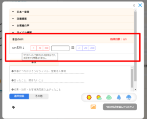 ここで登録したKPI項目が日報投稿フォーム内に入力エリアとして追加されます。